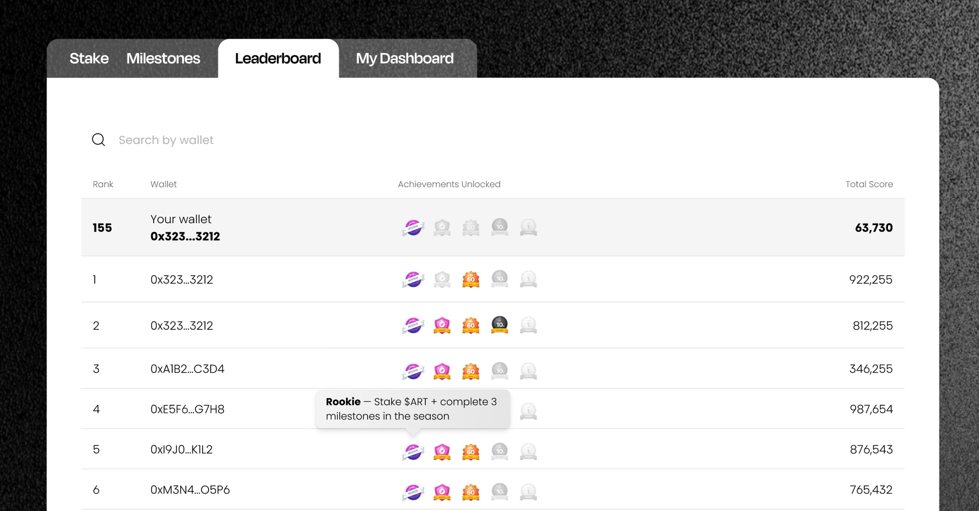 Makes you eligible to get milestone-based rewards. Staking Power helps determine your Leaderboard position. The more Staking Power you stack, the higher your score per milestone and the higher you rank
