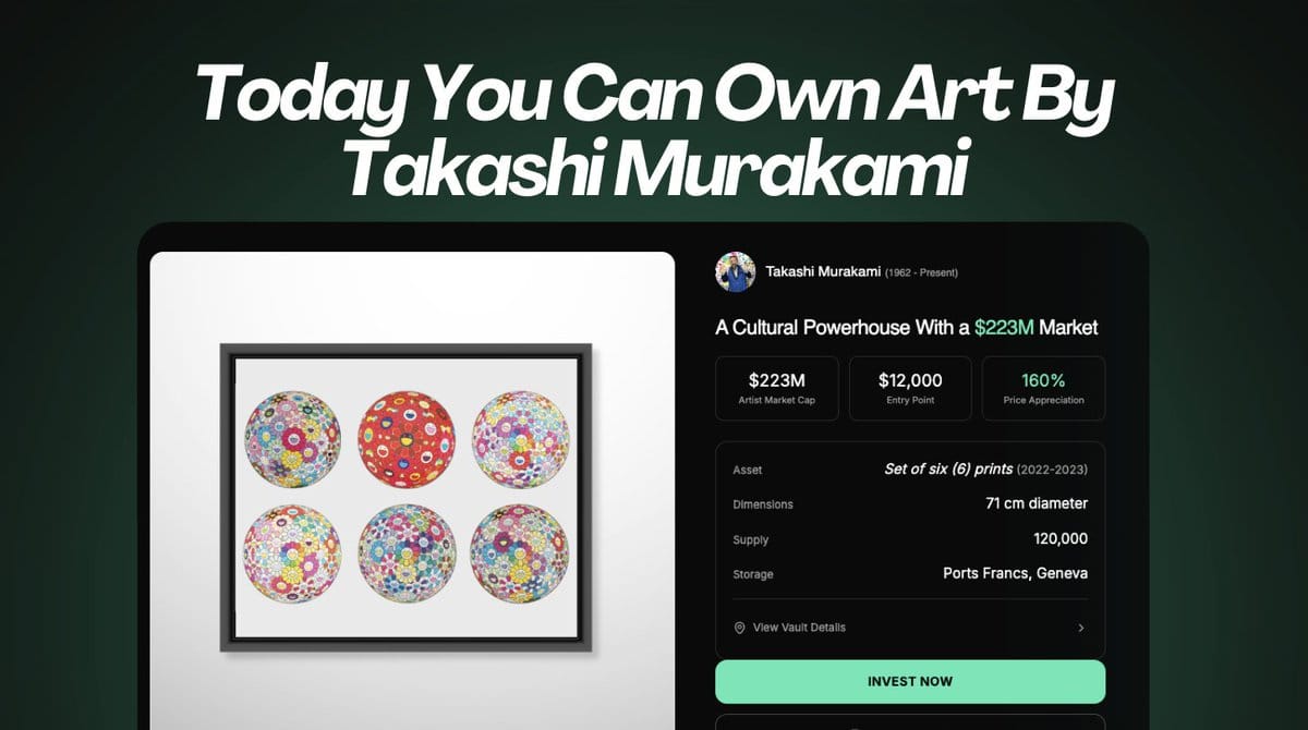 Murakami prints don’t just appreciate — they move. And that makes them the perfect candidate for fractionalization, real-time price discovery, and secondary trading.